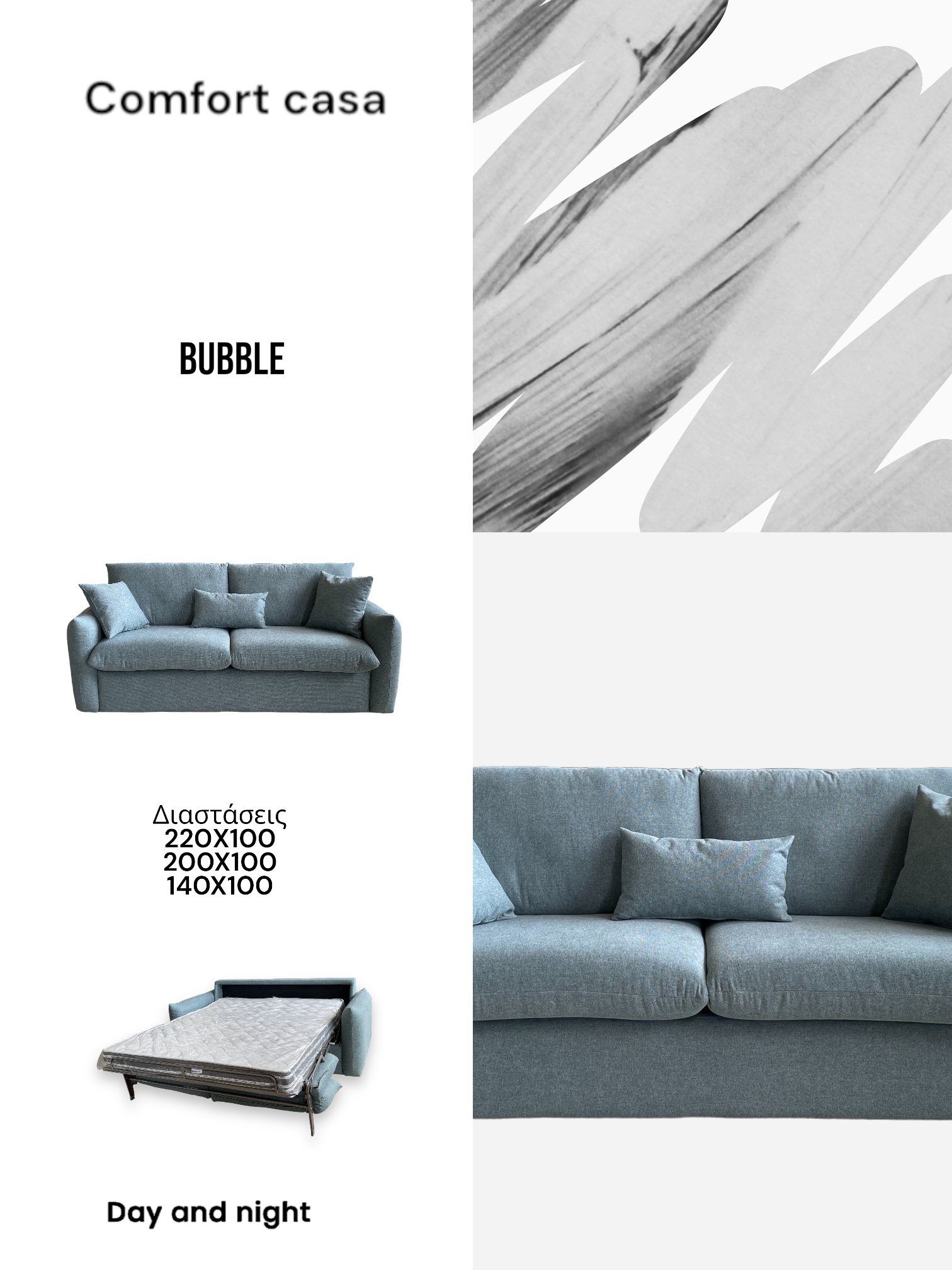 The mechanism gives us the opportunity to have a comfortable sofa and when required a comfortable bed with an anatomical mattress.