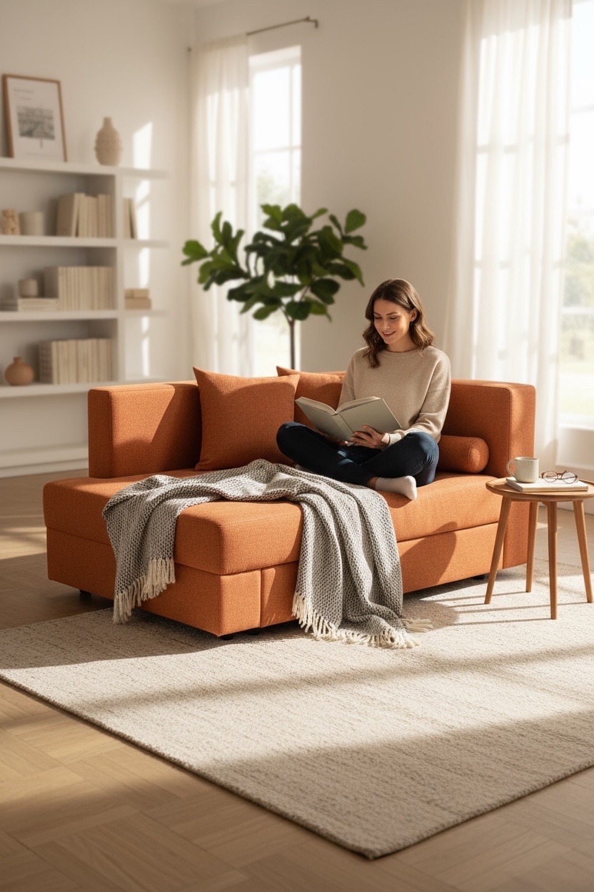 This sofa bed is available in standard dimensions or can be custom made according to your needs.